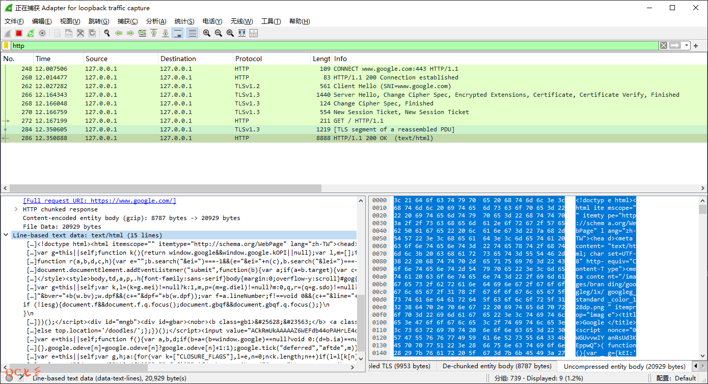 再使用 wireshark 对 loopback 网卡进行抓包,就能正常抓到 https 报文了
