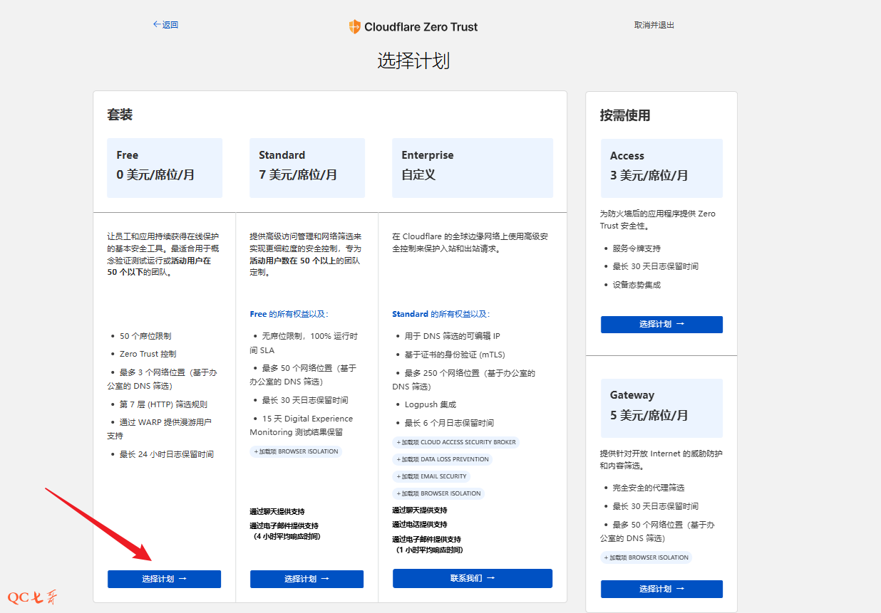 选择免费的套餐