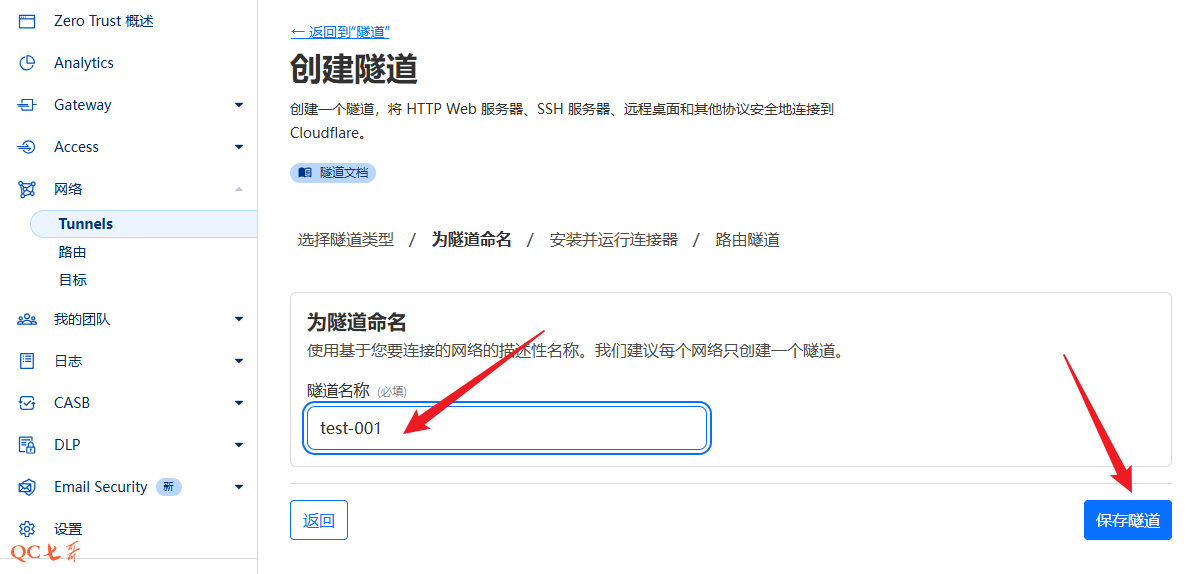 输入隧道名称,点击 “保存隧道”