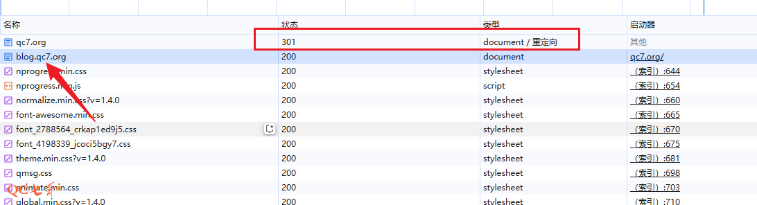 稍等片刻待 DNS 记录生效后,访问 qc7.org 或者 www.qc7.org,就会跳转到 blog.qc7.org 访问了