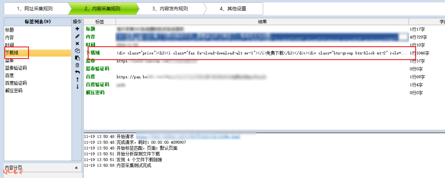 然后再通过插件中的 python 代码来对 “下载域” 文本进行二次加工解析,最终解析得到我关心的所有字段