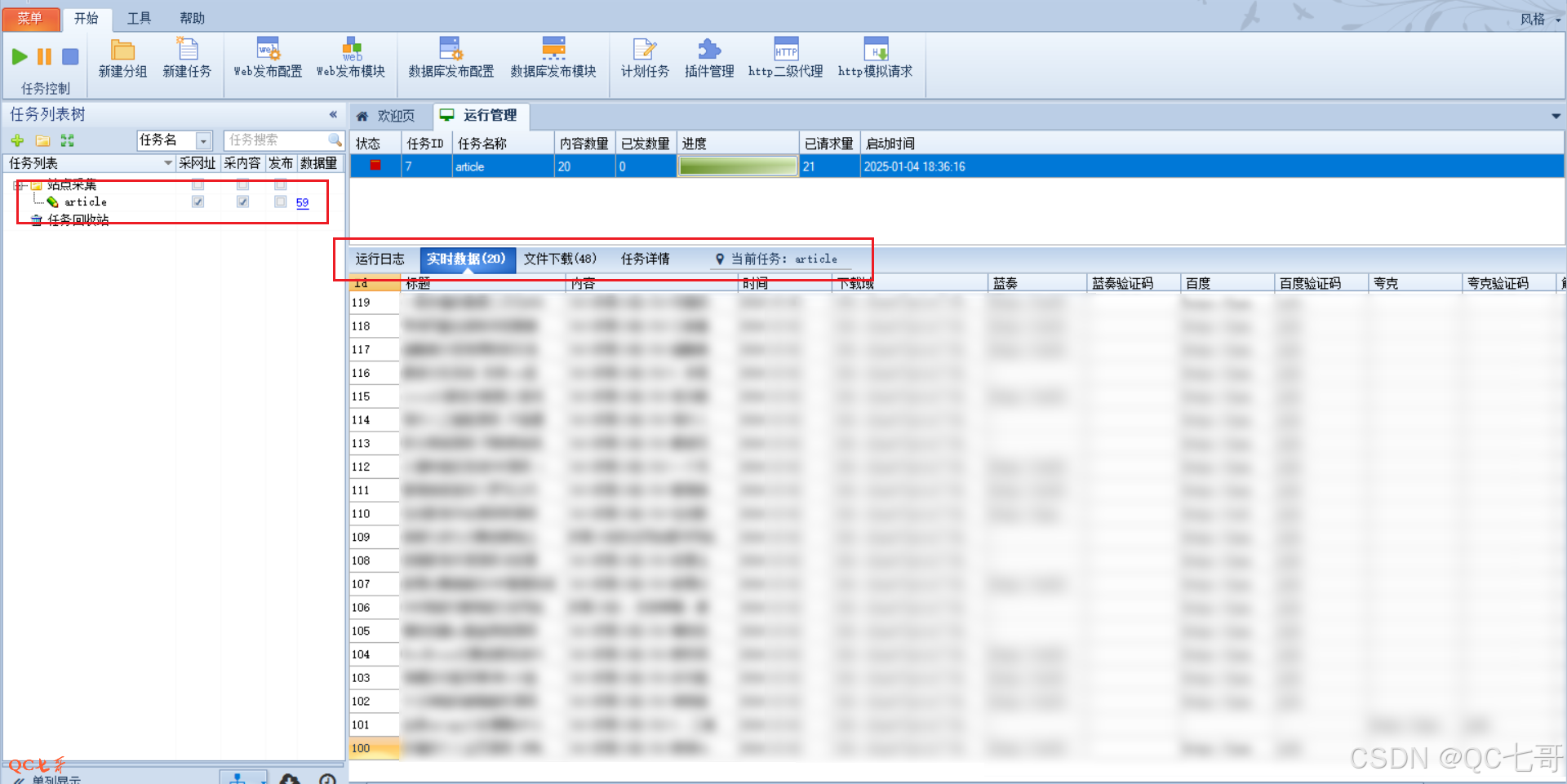 在前面网址和内容已经采集完毕,检查发现没问题之后,点击采集任务右边显示的数字