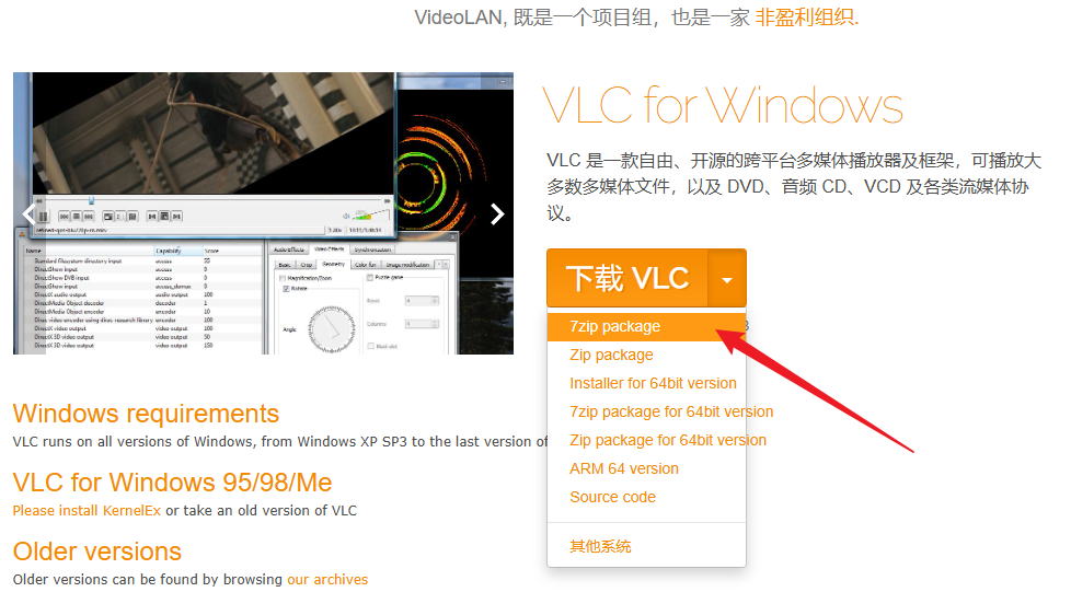 下载页面地址在这里 https://www.videolan.org/vlc/download-windows.html