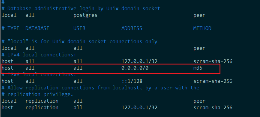 另外就是还需要修改端口的监听地址,默认监听 127.0.0.1 只允许本机访问,修改 /etc/postgresql/16/main/postgresql.conf 中的配置