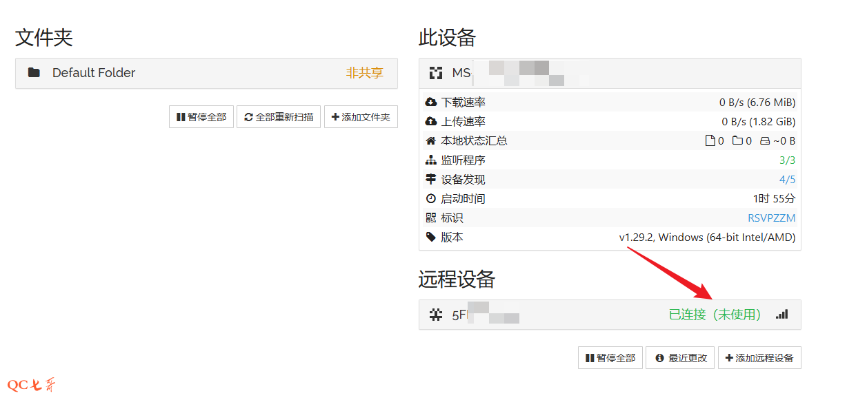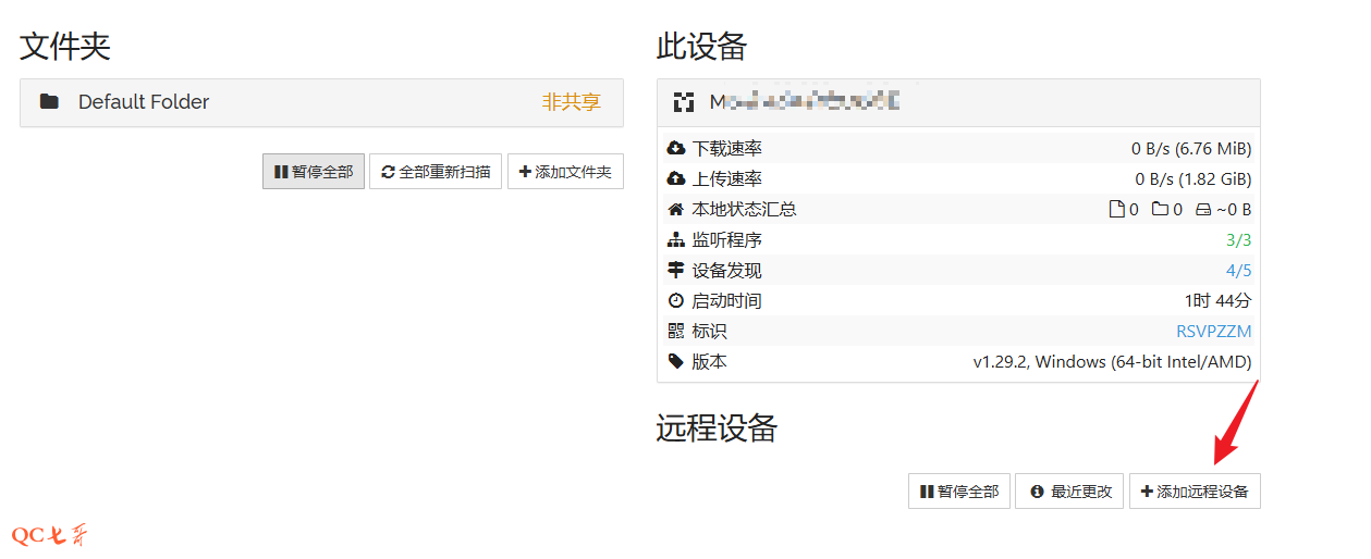 文件同步至少要部署两个节点,然后在这两台设备上启动 syncthing 服务