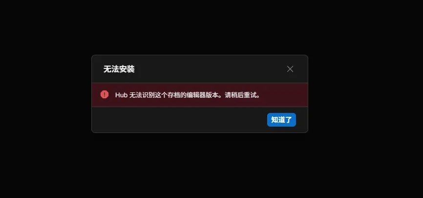 将请求修改为 unityhub://content/195698,然后直接在浏览器中打开,弹出 Unity Hub 后,显示一个错误如下,似乎编辑器版本的问题?