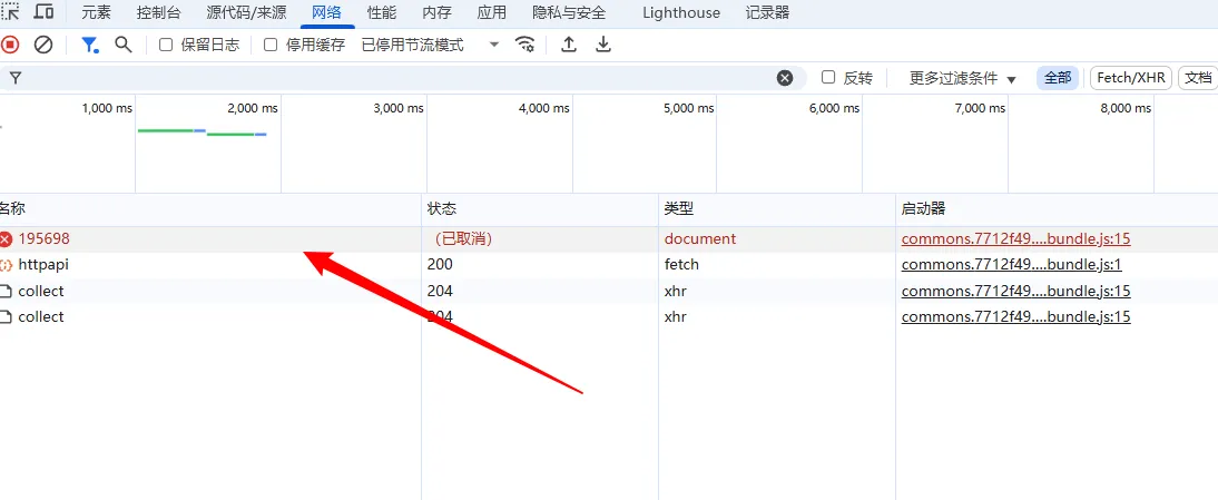 显示为请求了一个 com.unity3d.kharma:content/195698 地址,然后出现 “(已取消)” 的状态