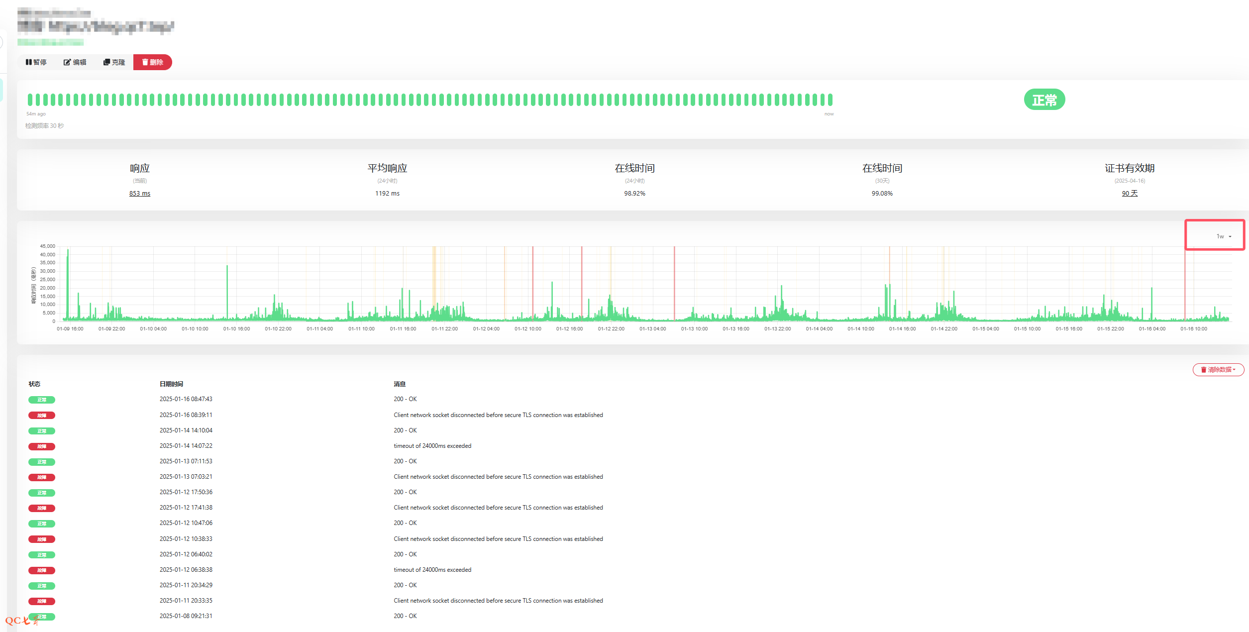 配置完毕后,就可以放一边了,登录后台可以最多查看业务过去一周的健康情况