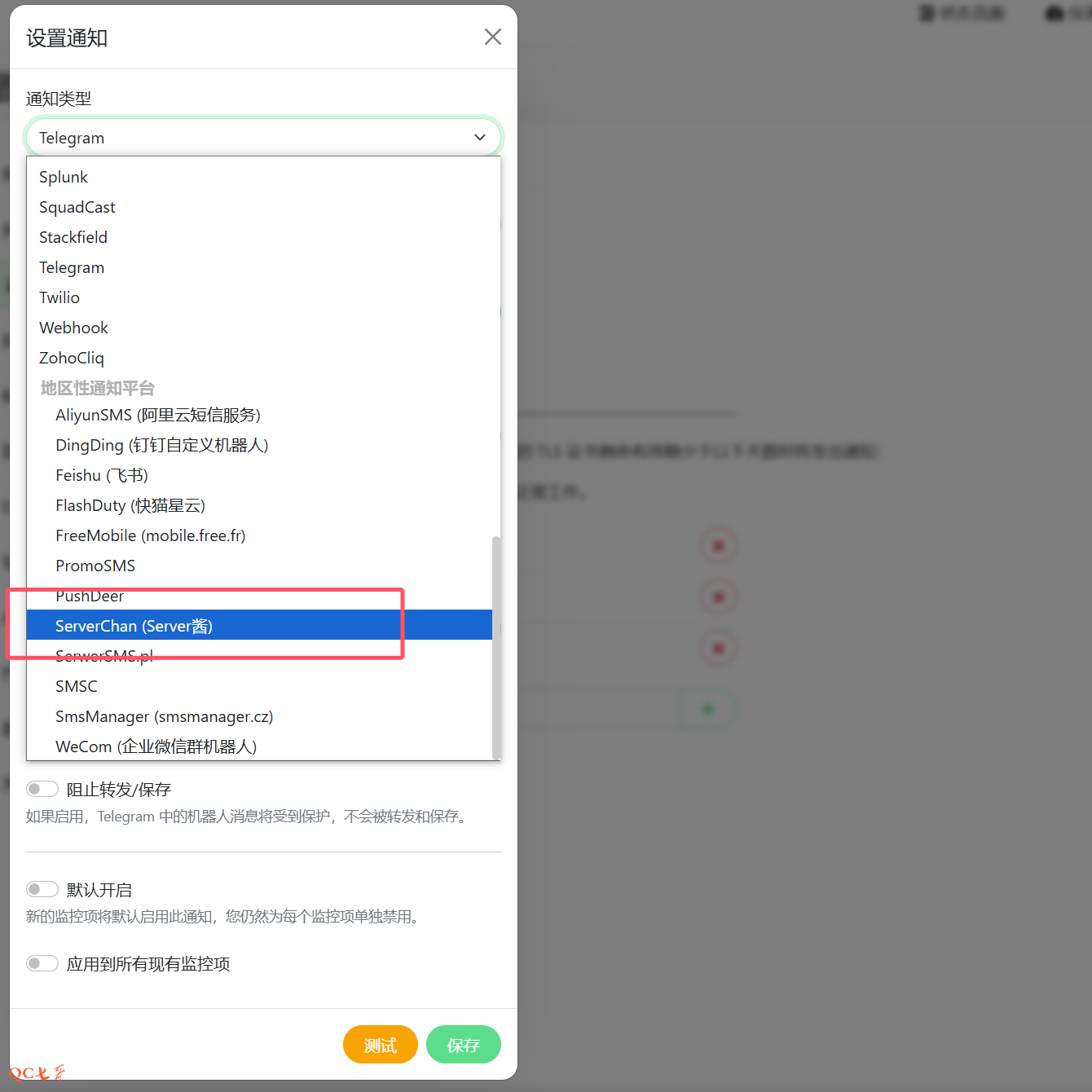 如 Telegram、Discord、Email、Server酱… 等多种渠道的通知方式