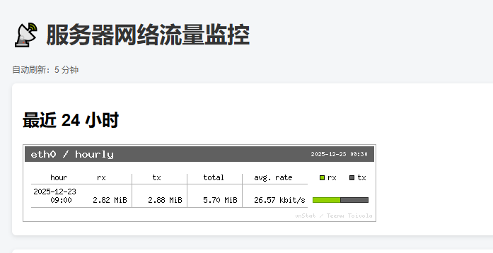 希望整体和 goaccess 类似,但是 goaccess 是监控 web 服务的,这里使用 vnstat 来监控的是整台服务器的流量