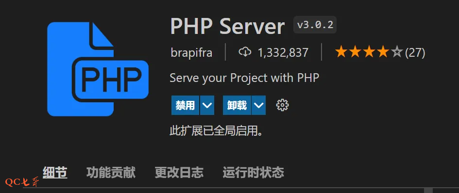 预览 php 代码不需要使用上述的 Live Server 插件,这里使用的是 php server 插件