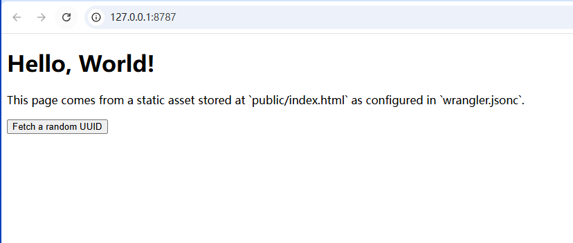 命令行中输入 npm run dev 就可以在本地运行起来了,监听在 http://127.0.0.1:8787,使用浏览器输入 url 地址进行访问