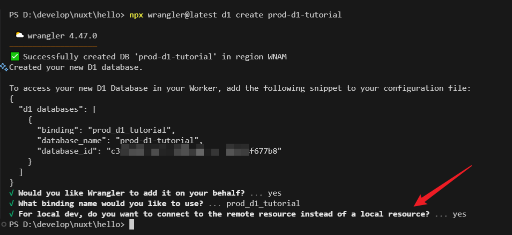 npx wrangler@latest d1 create prod-d1-tutorial