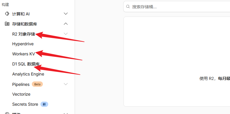 cf 提供多种数据库,常见的有 D1(关系数据库,类似sqlite轻量的)、Workers KV(类似redis的键值存储)、R2(类似aws s3的对象存储),其他类型的一般用不到